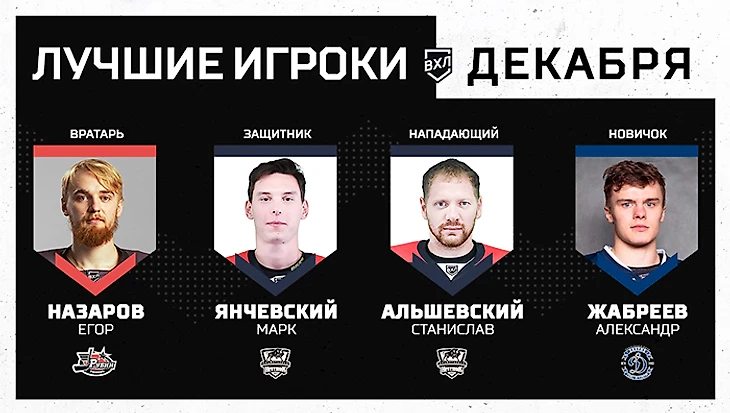 - лучшим вратарем признан Егор Назаров (1995) из «Рубина», который провел в декабре девять матчей, одержав семь побед, три из которых «сухие». Егор отразил 94,06 % бросков в створ ворот при коэффициенте надежности 1,46.