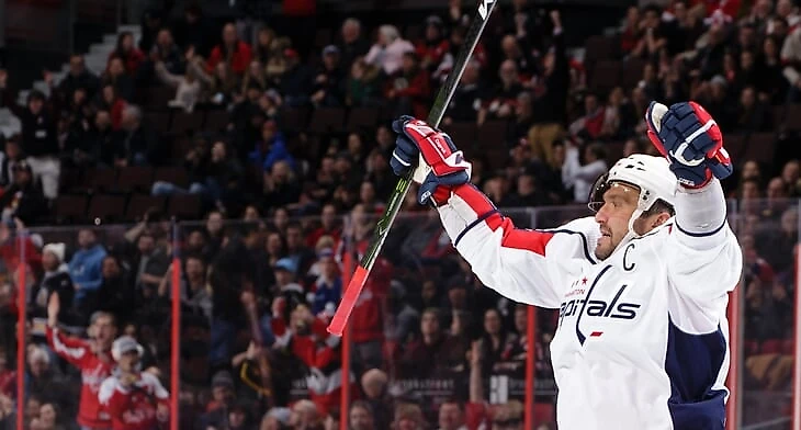 Конечно, вероятность этого рекорда стремится к нулю – плотность игры современной НХЛ зашкаливает, регулярка состоит из жалких 56 матчей, «Вашингтон» постарел, а из откровенно слабых соперников в дивизионе только «Нью-Джерси». Но, еще раз: в мире есть только один человек, который хотя бы в теории на это способен. У него цифра 8 на спине и он уже катит к левому кругу.