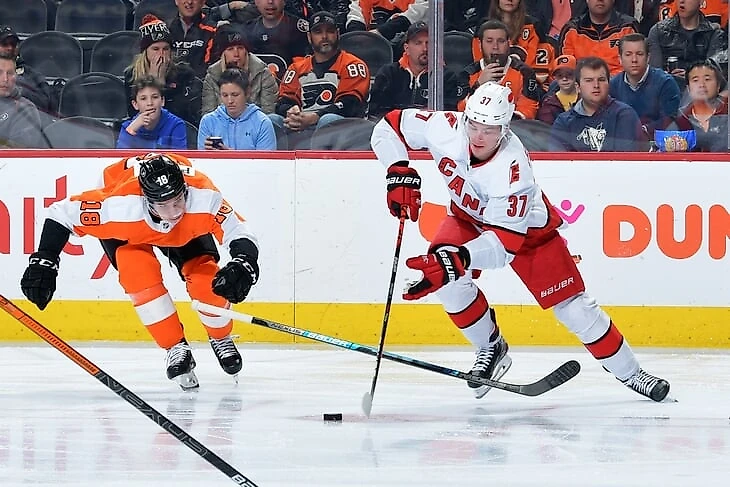 Свечников дебютировал в НХЛ в 18 лет – и как мы помним, подводили его к основе постепенно в четвертом звене, но дав ему нормальных партнеров. Сейчас Андрей однозначно займет место в топ-6, но пока наигрывают его не с Ахо и Терявяйненом. Другое дело, что форвард, которого так высоко оценивали на драфте, должен тащить и с «просто» нормальным центром уровня Трочека. Ковальчук в 20 лет набрал больше очка за игру – вот это и будет его ориентиром.