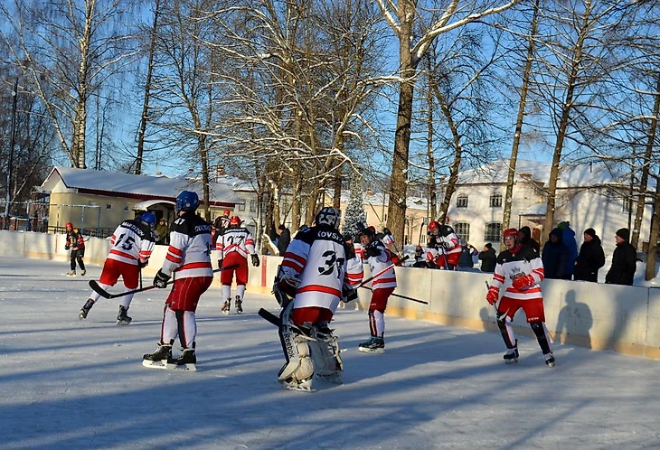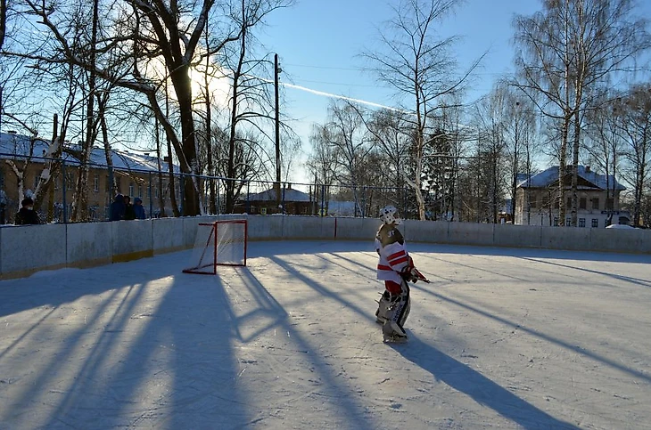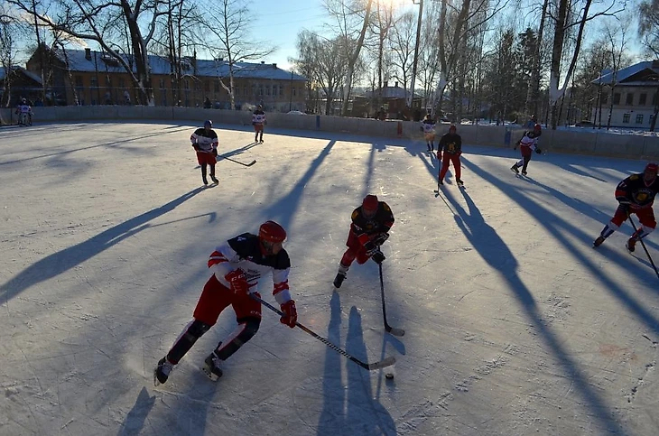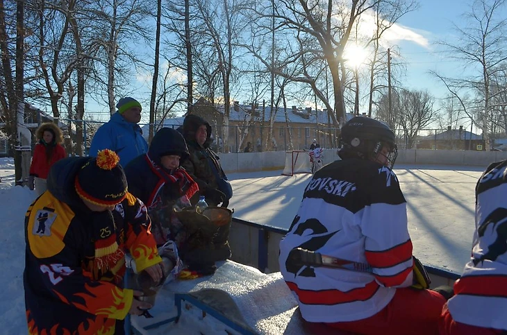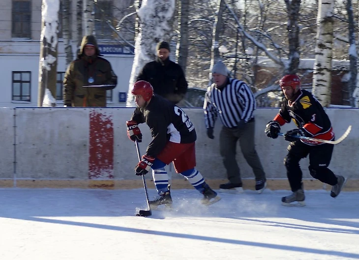 Погода ниже -20℃, едем сначала на правый берег – в Борисоглебск. На катке на правом берегу носятся команды «Компот» и «Метеор». Холодно, конечно, но скорости впечатляют. Полагаю, процентов 85 виденных мной любительских команд эти ребята бы обыграли.