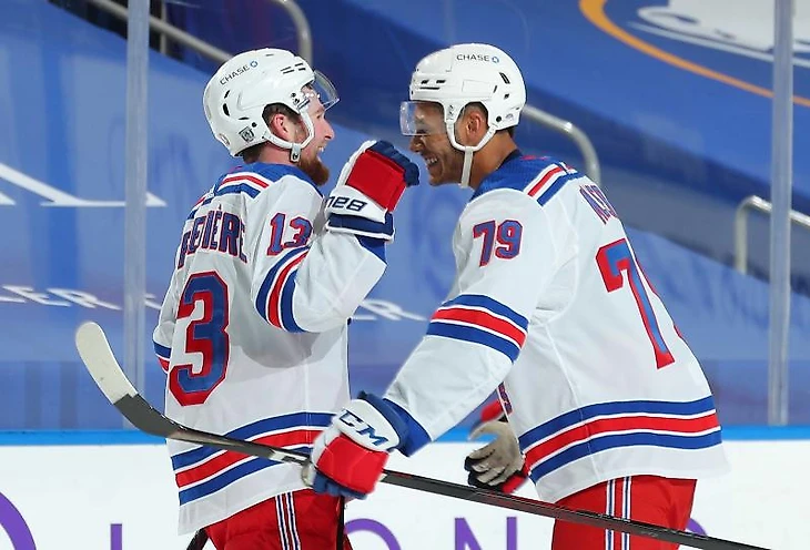 "Буффало Сэйбрз"-"Нью-Йорк Рейнджерс" 2:3 (ОТ).Алекси Лафренье в овертайме принёс победу гостям.Артемий Панарин набрал 2 очка (1+1),Павел Бучневич отдал результативную передачу,Игорь Шестёркин отразил 23 броска.У хозяев Сэм Райнхарт набрал 2 очка (1+1)."Рейнджеры" прервали серию из 4 поражений подряд.