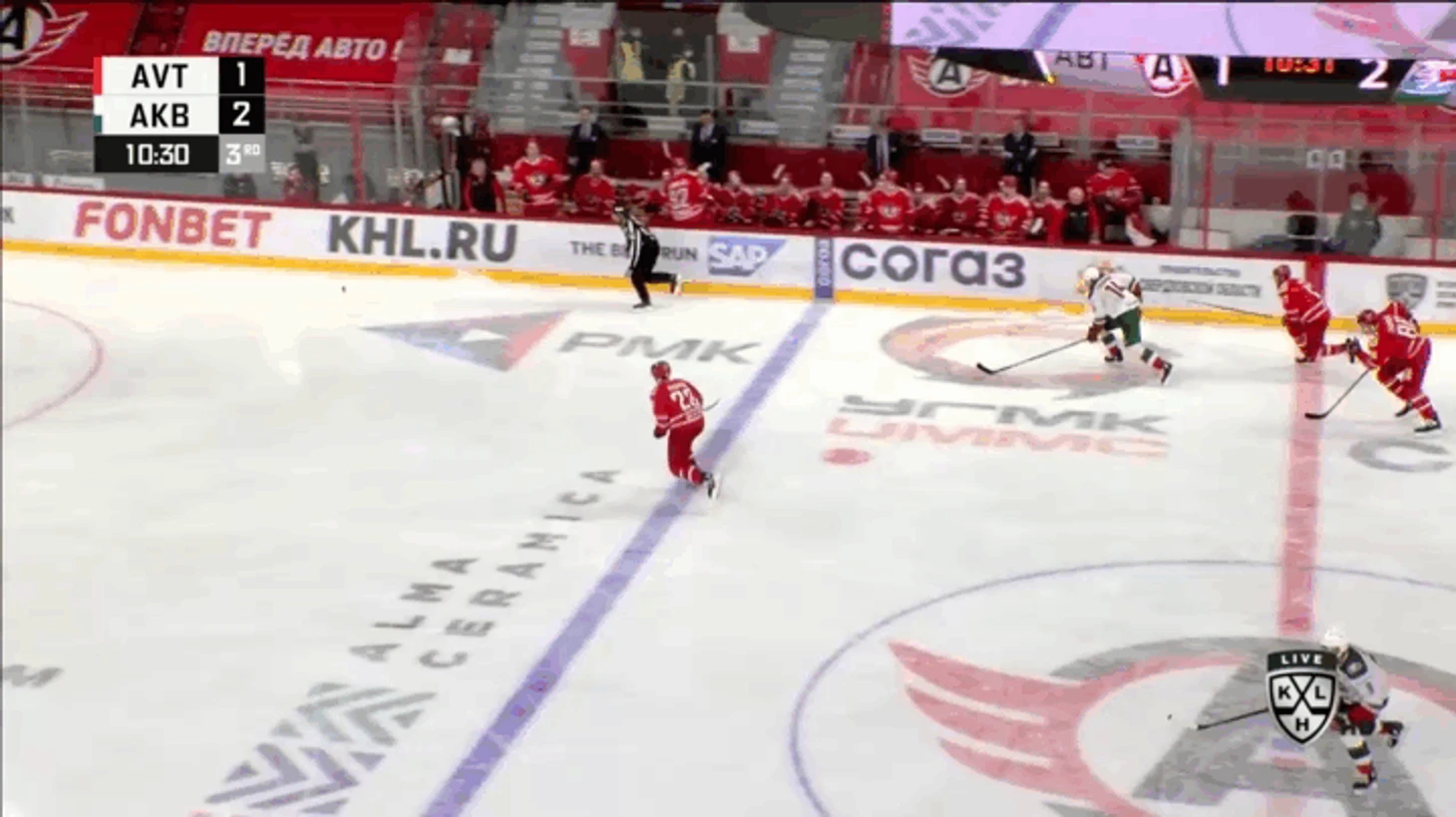 Холланд, в отличие от двух других форвардов, назад не побежал, а поехал на смену. Поэтому Дацюк, вышедший вместо него, приехал к эпизоду последним. Счет 1:2, «Автомобилист» неплохо поддавливал соперника, данный бросок в створ был первым от «Ак Барса» в третьем периоде и этот гол убил интригу в матче.