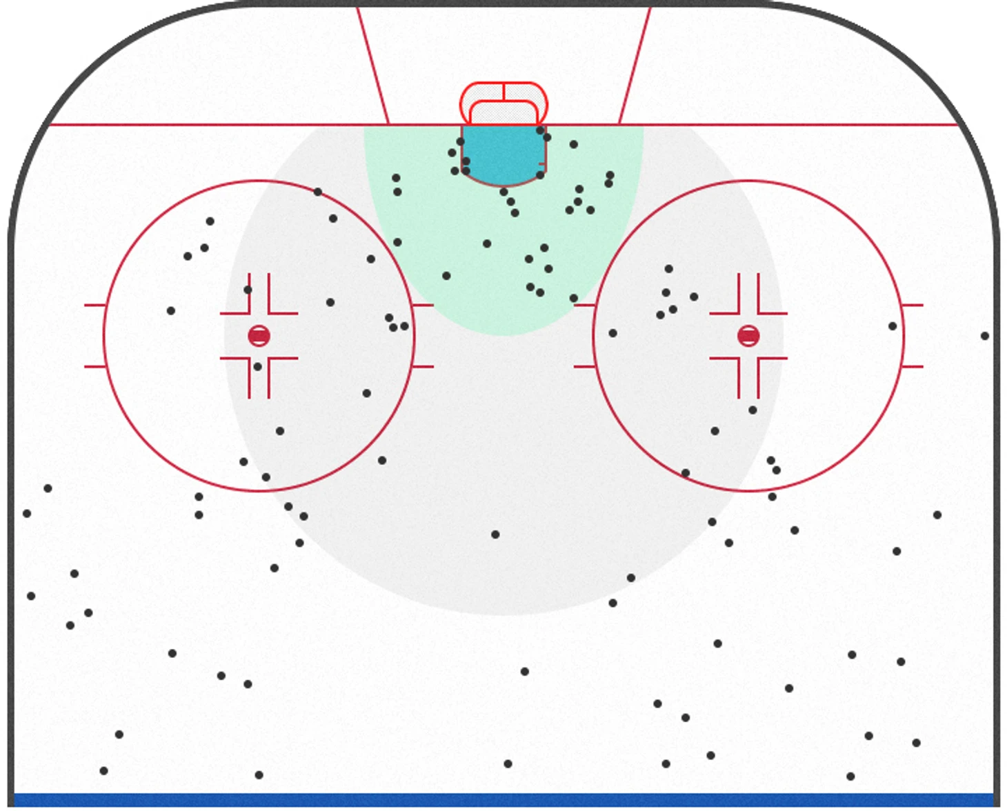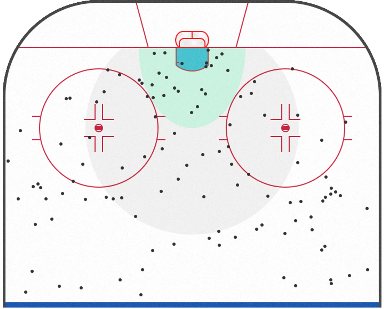 Статистика игры в обороне практически не менялась весь сезон, кроме пропущенных шайб. Минус один бросок в створ и чуть больше блок-шотов – слишком незначительная разница, чтобы можно было сделать хоть какой-то вывод. На бросках остановимся чуть подробнее.
