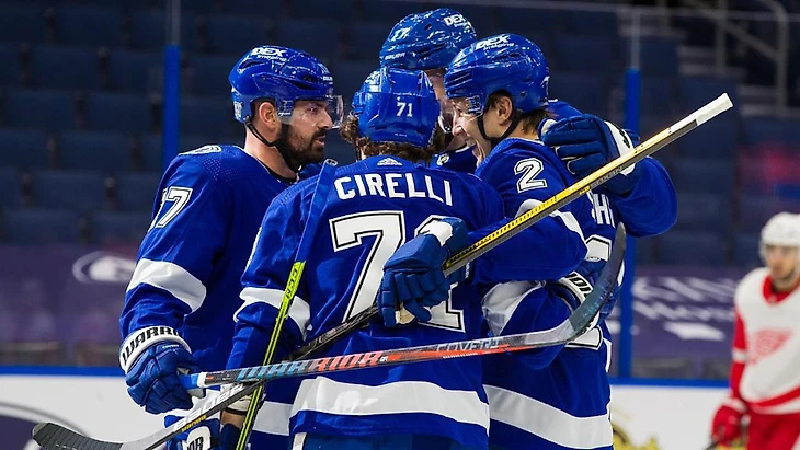 "Тампа-Бэй Лайтнинг"-"Детройт Ред Уингз" 5:1.Виктор Хедман набрал 2 очка (1+1),Блэйк Коулмэн отдал 2 результативные передачи,Михаил Сергачёв отдал результативную передачу,Андрей Василевский отразил 15 бросков."Молнии" выиграли 3 игру подряд.