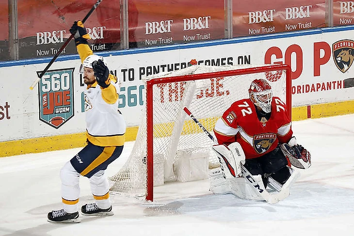 "Флорида Пантерз"-"Нэшвилл Предаторз" 5:6 (ОТ).Филип Форсберг в овертайме принёс победу гостям.Филип Форсберг набрал 5 очков (2+3),Мэтт Дюшен забросил 2 шайбы,Юсе Сарос отразил 19 бросков.У хозяев Джонатан Юбердо набрал 5 очков (3+2).