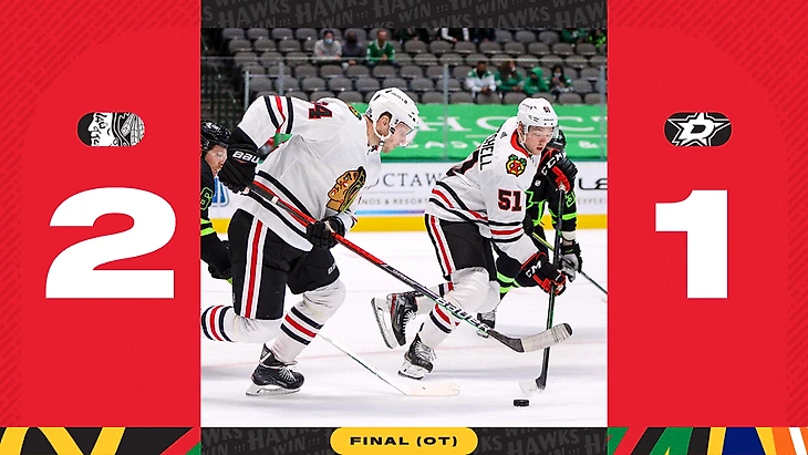 "Даллас Старз"-"Чикаго Блэк Хоукс" 1:2 (ОТ).Алекс ДеБринкат в овертайме принёс победу гостям.Алекс ДеБринкат забросил 2 шайбы,Патрик Кейн отдал 2 результативные передачи,Никита Задоров отдал результативную передачу,Малкольм Суббан отразил 30 бросков.