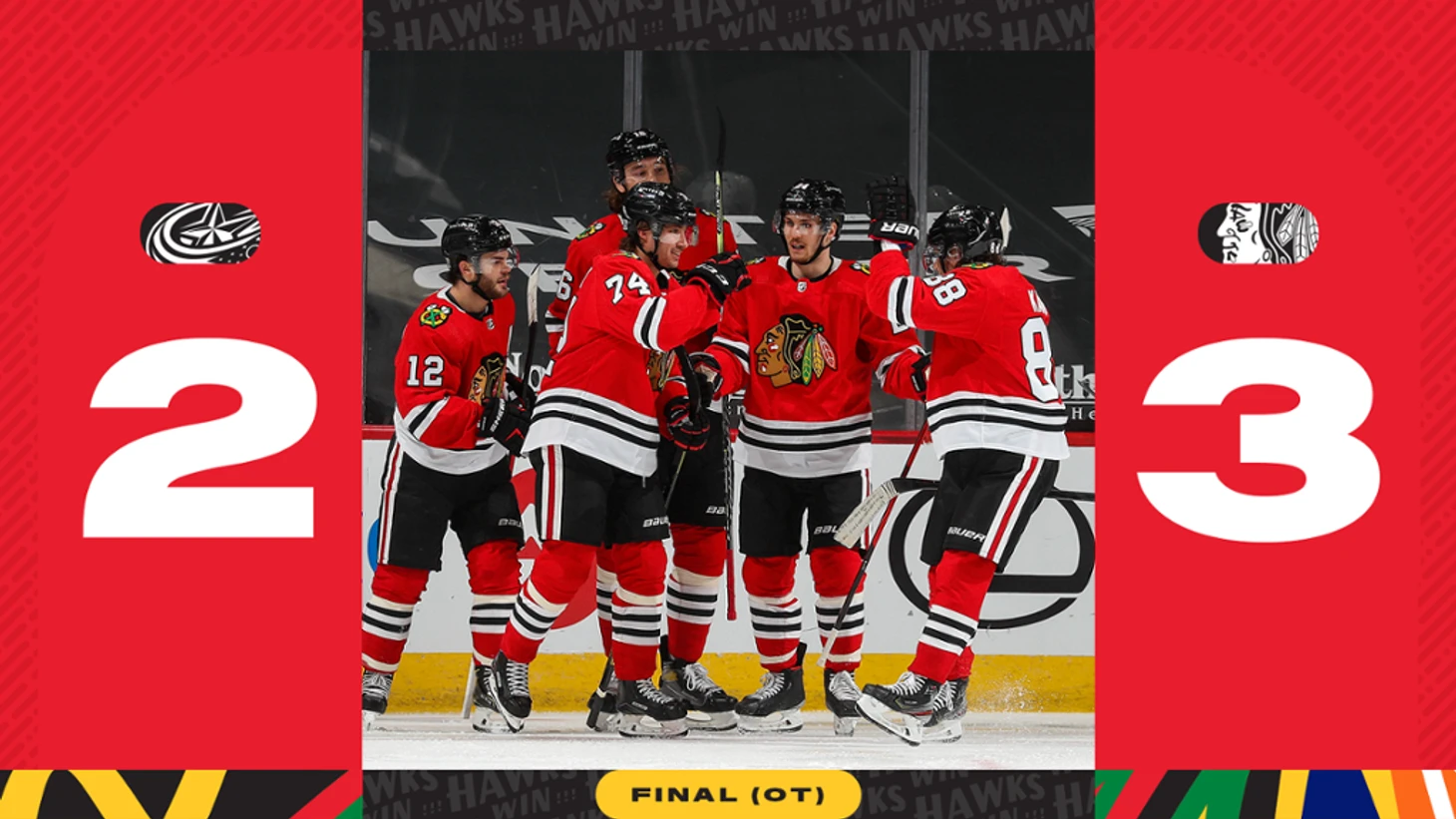 "Чикаго Блэк Хоукс"-"Колумбус Блю Джакетс" 3:2 (ОТ).Алекс ДеБринкат в овертайме принёс победу хозяевам.Патрик Кейн отдал 2 результативные передачи,Никита Задоров отдал результативную передачу,Кевин Ланкинен отразил 29 бросков.У гостей Кэм Аткинсон набрал 2 очка (1+1).В первом периоде Брендон Хагель подрался с Патриком Лайне.