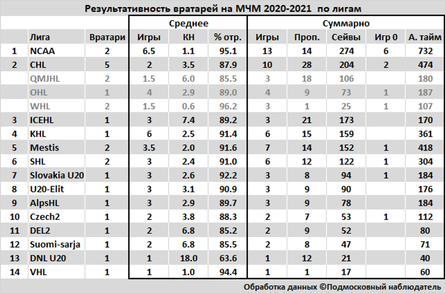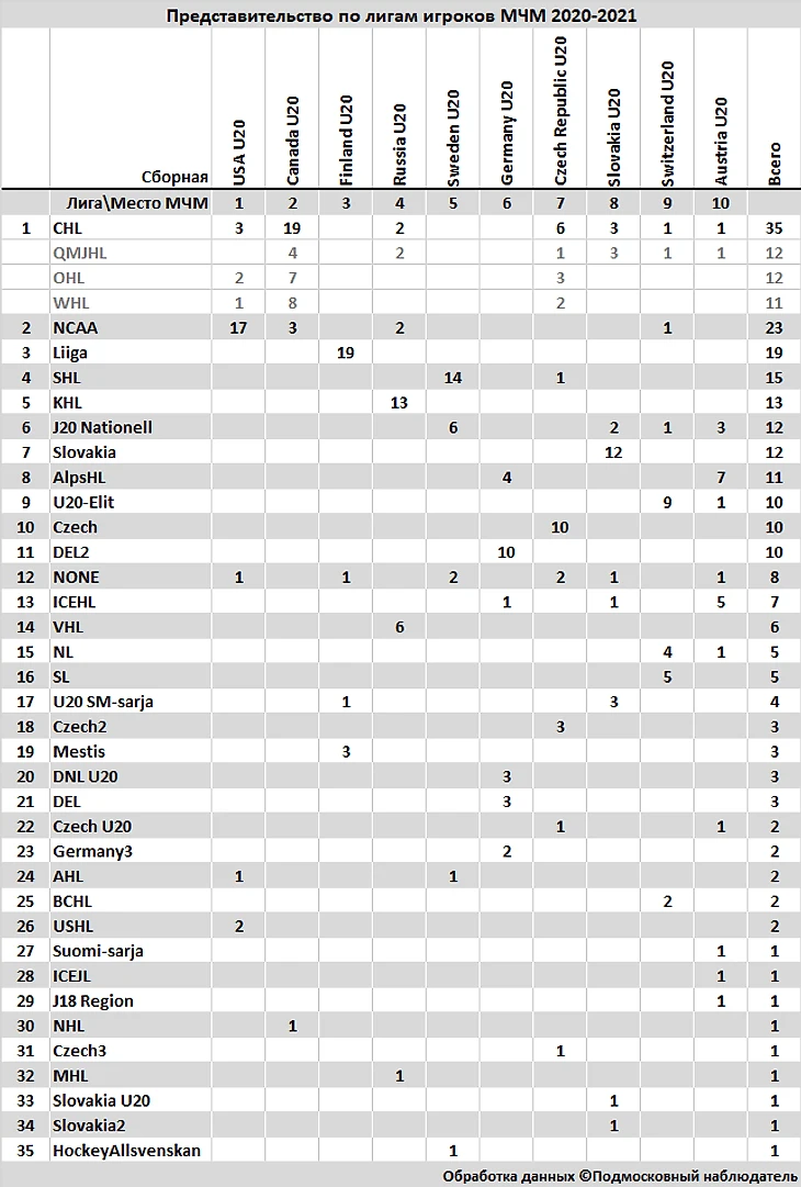 Констатируем факт. Лучшими кузницами кадров молодежного хоккея в настоящее время являются CHL и NCAA, даже при том, что в пандемийный сезон NCAA и QMJHL стартовали с задержкой, а OHL и WHL вовсе отменили чемпионат.