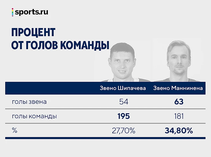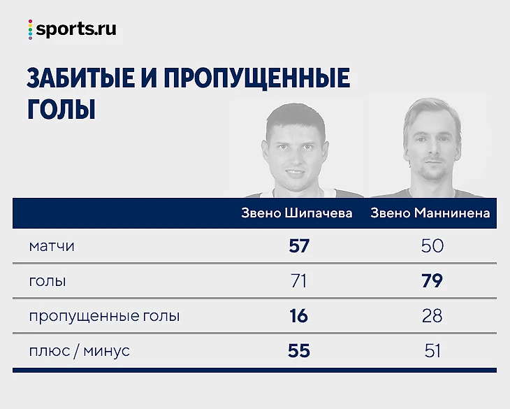 Лучшую тройку выбрали просто: сложили вместе шайбы нападающих звена в тот момент, когда все трое были на льду. У тройки Маннинена их получилось 63, у Шипачева – 54.