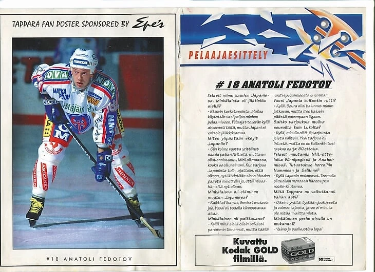 Новый – односторонний – контракт для Анатолия Федотова Марк Гандлер так и не подпишет. Федотову исполнится уже 29 лет, и он примет решение уехать в Европу. Сначала была «Таппара» из Тампере, самый титулованный клуб Финляндии (17 чемпионств на 2017 год), где уже играли бывшие спартаковцы Александр Барков-старший и Алексей Ткачук, а капитаном был Валерий Крюков, финн, немного говоривший по-русски. Из «Таппары» Федотов получит – впервые за 10 лет – приглашение в национальную сборную и сыграет за Россию на чемпионате мира-1997. Он как раз проходил в Финляндии.