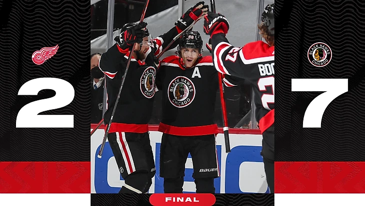"Чикаго Блэк Хоукс"-"Детройт Ред Уингз" 7:2.Хозяева в третьем периоде забросили 5 шайб.Алекс Дебринкат набрал 4 очка (1+3),Патрик Кейн набрал 3 очка (1+2),Райн Карпентер забросил 2 шайбы,Никита Задоров забросил одну шайбу,Кевин Ланкинен отразил 44 броска.У гостей Евгений Свечников забросил одну шайбу,Владислав Наместников отдал результативную передачу.Патрик Кейн забросил 400-ю шайбу.