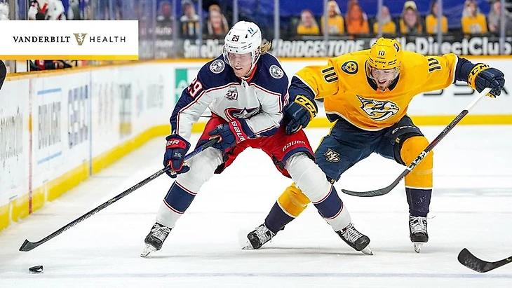 "Нэшвилл Предаторз"-"Колумбус Блю Джакетс" 3:1.Ник Казинс с Ээли Толваненом и Эриком Хаулой забросили по шайбе,Юсе Сарос отразил 28 бросков.В конце матча Мэттью Беннинг и Макс Доми получили по 10 минут штрафа.