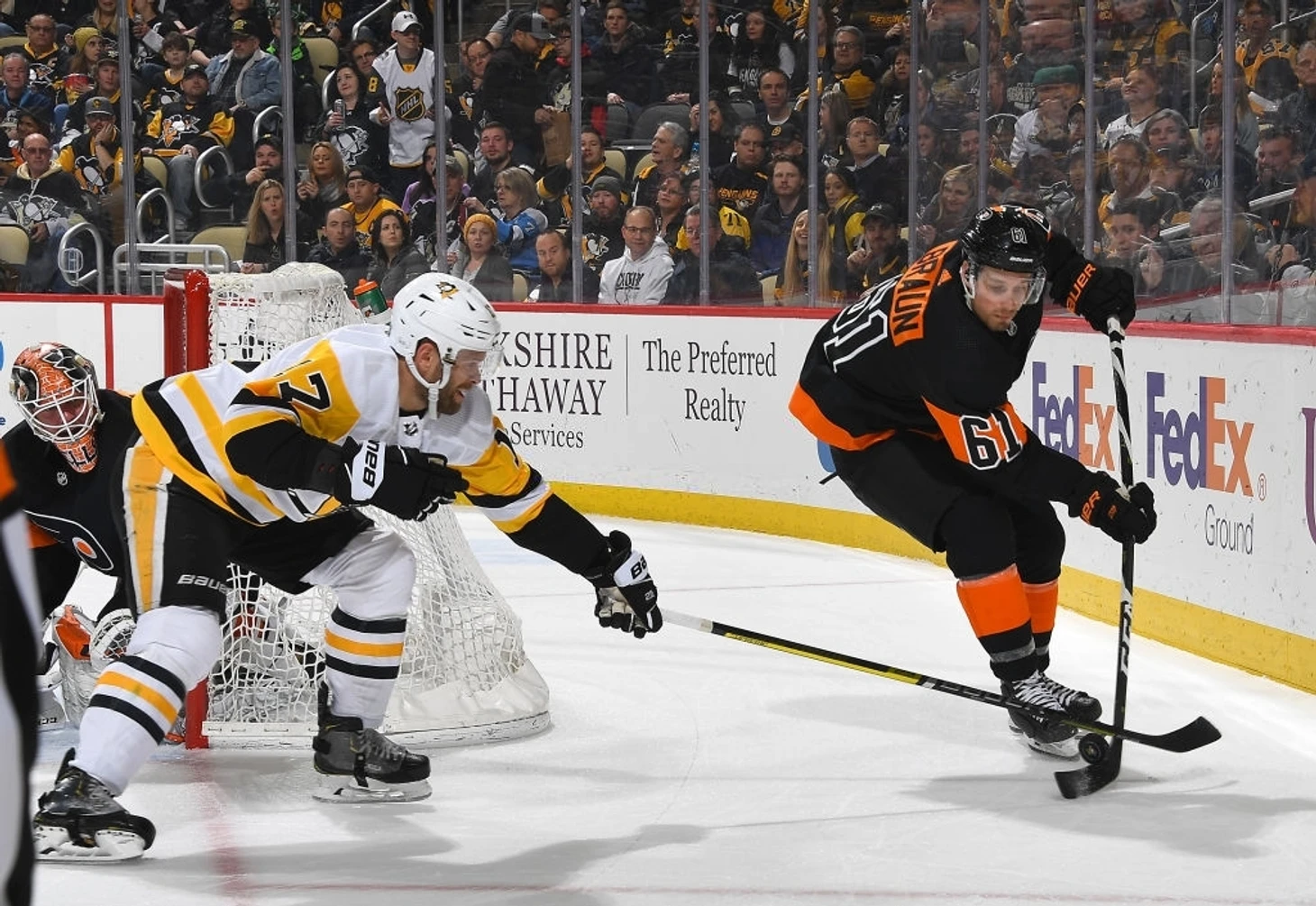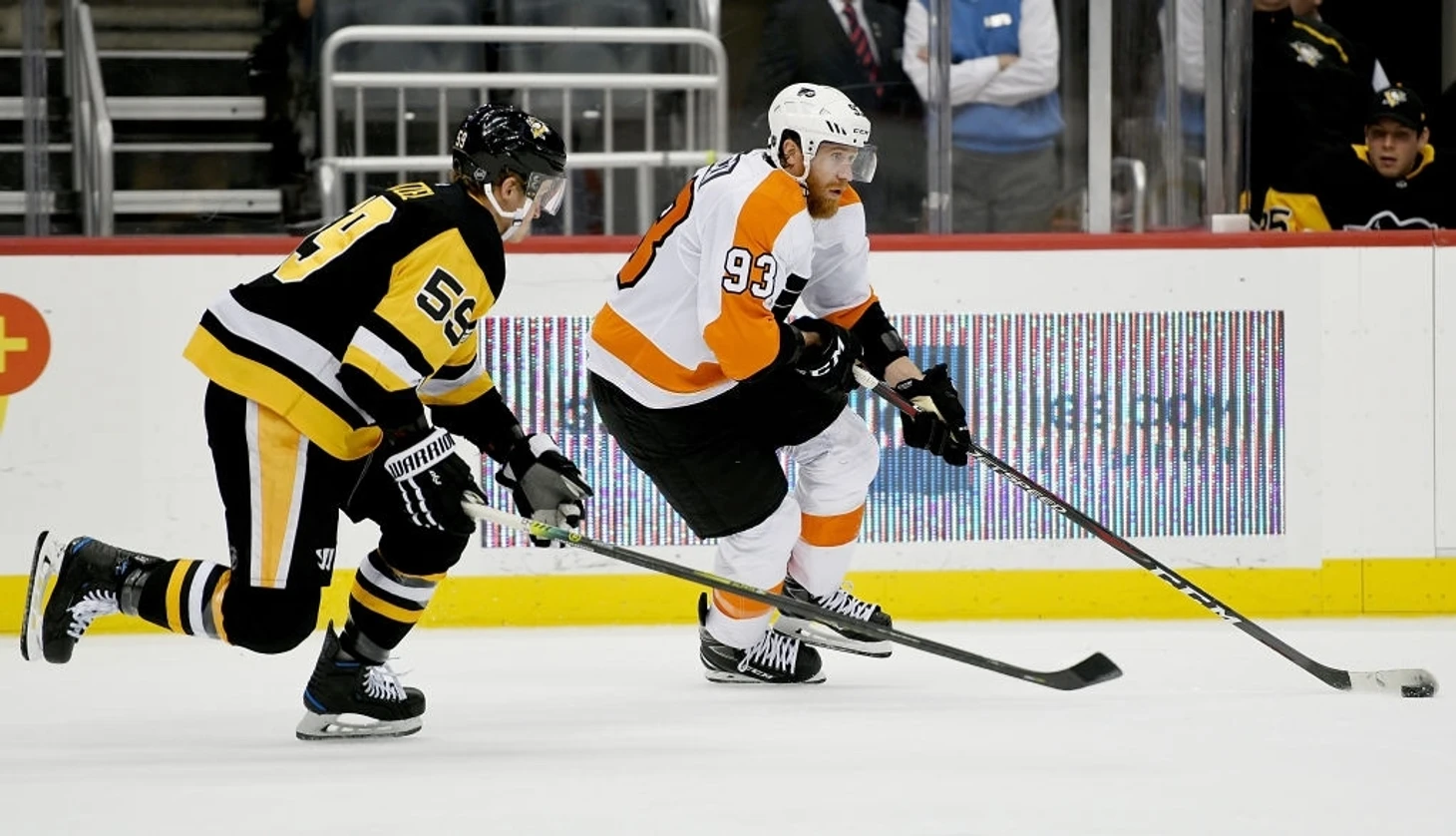 Евгений Малкин в последнее время проблемно набирает очки и подвергается критике, что сам признал в недавнем интервью. Также отмечу, что 71-й номер соперника не набрал очков в прошедших двух играх текущего сезона против «Флайерс», заработав по «-1» в каждом из этих матчей.