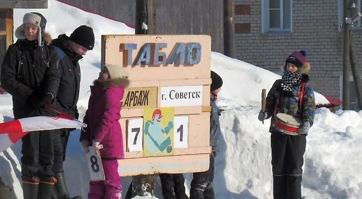 На стадионе красивое резное табло, но почему-то не продуман вариант счета 1:1 или 2:2. Если 1:1, то берется табличка с цифрой 14, где закрывается четверка; а вот второй двойки просто нет. Зато снега за зиму выпало столько, что трибуны сделали аж двухъярусные – не в смысле лавок, а в смысле утоптанных сугробов.