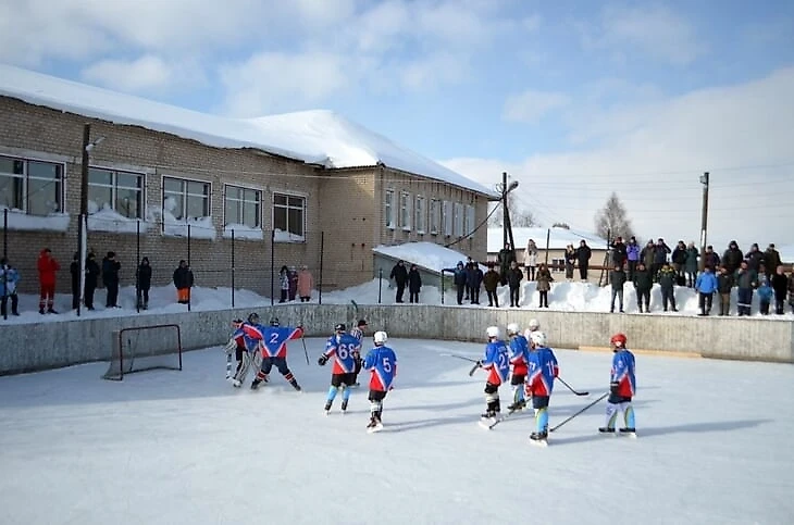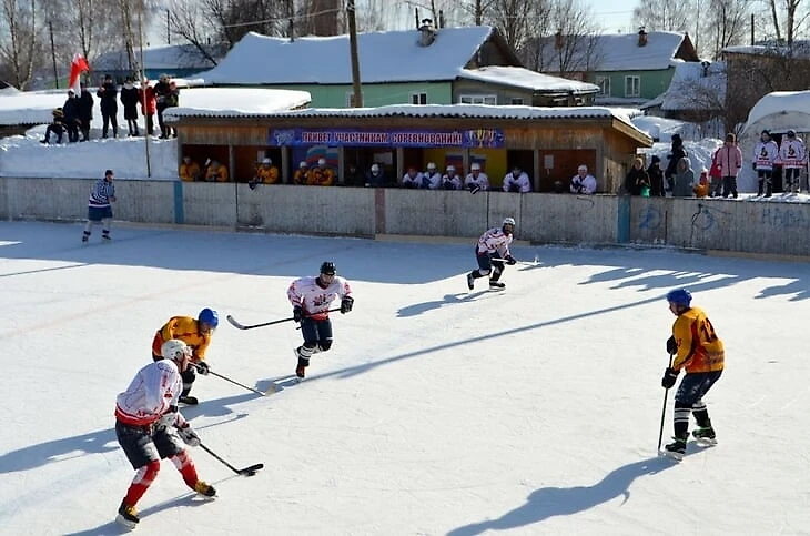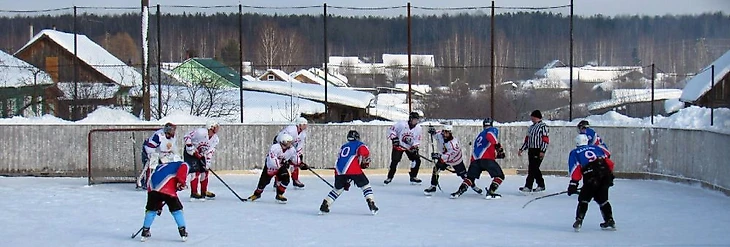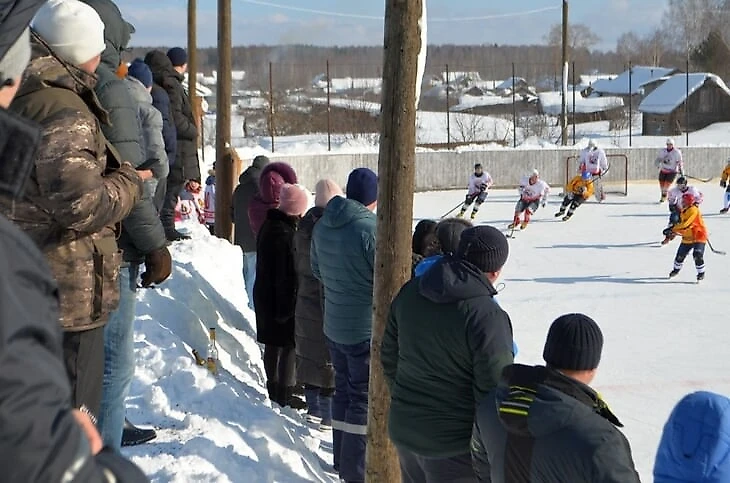 Чуть южнее играют команды Зуевки, Фаленок и Богородского, но кворума им не хватает, и они обычно зовут кого-то из Кирова или из соседней Удмуртии. Вот вам бодрое видео из Богородского, где тетенька внезапно говорит хоккеистам «Равняйсь! Смирно!» (хоккеисты несколько удивляются), а на 4:20 со страшной скоростью пролетает лесовоз.