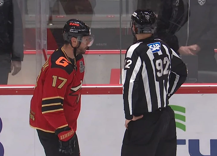 Арбитры ориентировались на пункт 2 правила 152 «Удар коленом»: «На хоккеиста, который безответственно подвергает опасности соперника, в результате действий с использованием колена, будет наложен Большой плюс автоматически Дисциплинарный до конца матча штраф».