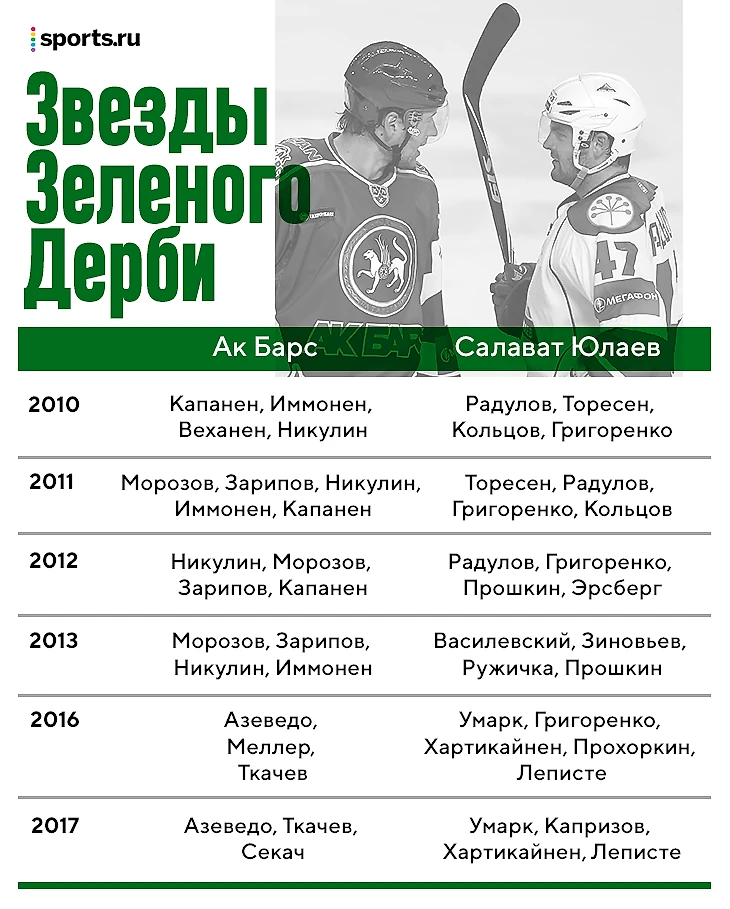 Разумеется, в табличке только хедлайнеры дерби – без харизматичных ролевиков вроде Артема Лукоянова или неожиданных снайперов вроде Игоря Мирнова.