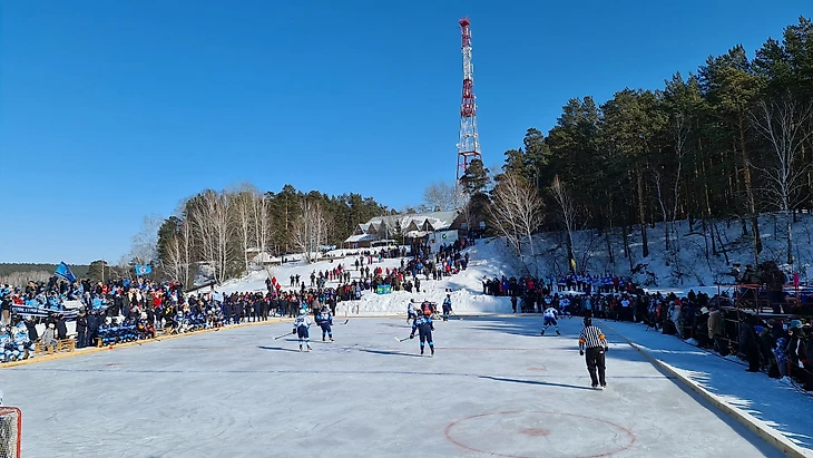 Прелесть российских просторов и хоккей решили соединить в Сибири — команда из Новосибирска поехала играть в поселок Ордынское. Причем площадку создавали прям на льду реки Орда, а не где-то рядом с ней.