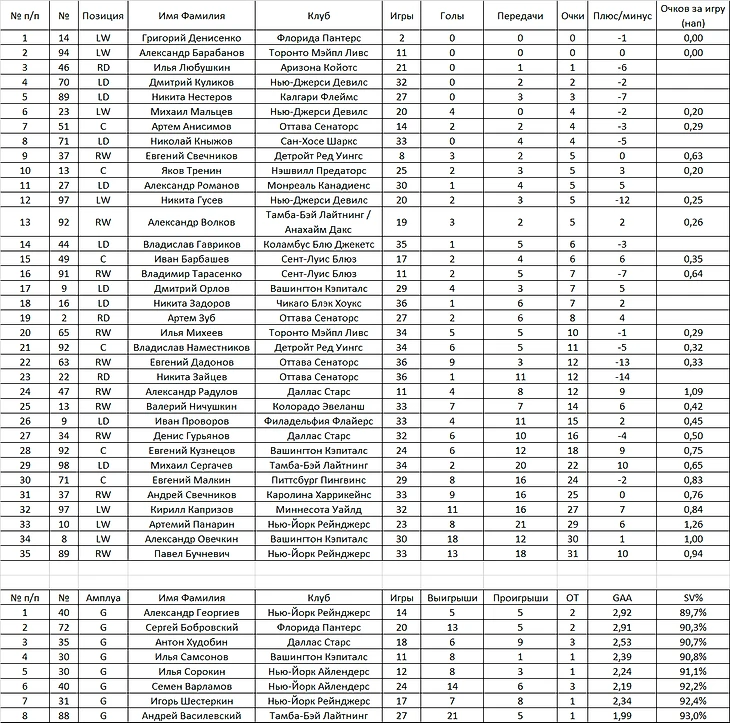 Продолжаем публикацию статистики наших парней в НХЛ.