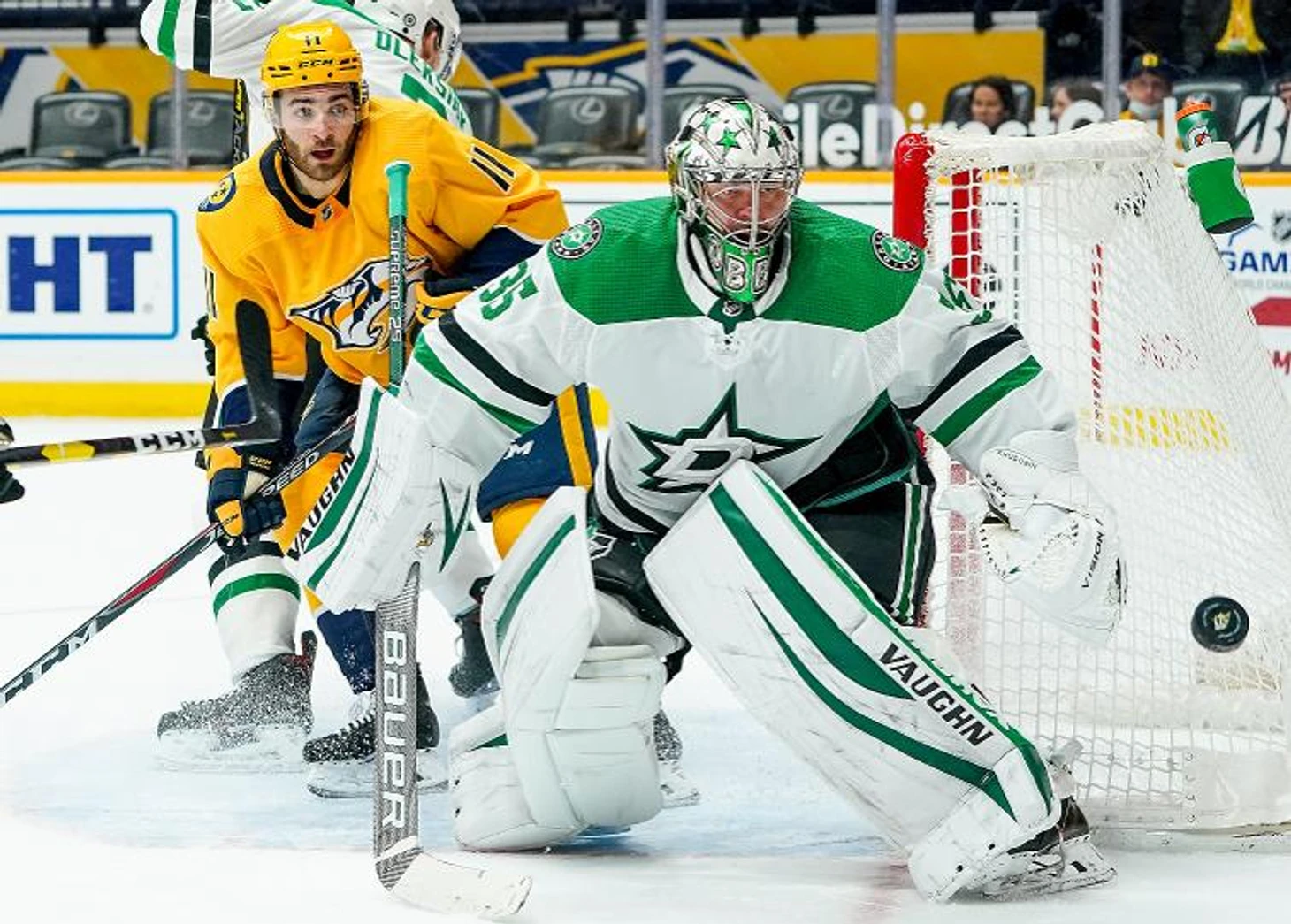"Нэшвилл Предаторз"-"Даллас Старз" 1:4.Джо Павелски отдал 2 результативные передачи,Денис Гурьянов отдал результативную передачу,Антон Худобин отразил 21 бросок.У хозяев Яков Тренин отдал результативную передачу.В конце матча Тай Делландреа подрался с Люком Кунином."Даллас" прервал серию из 3 поражений подряд.