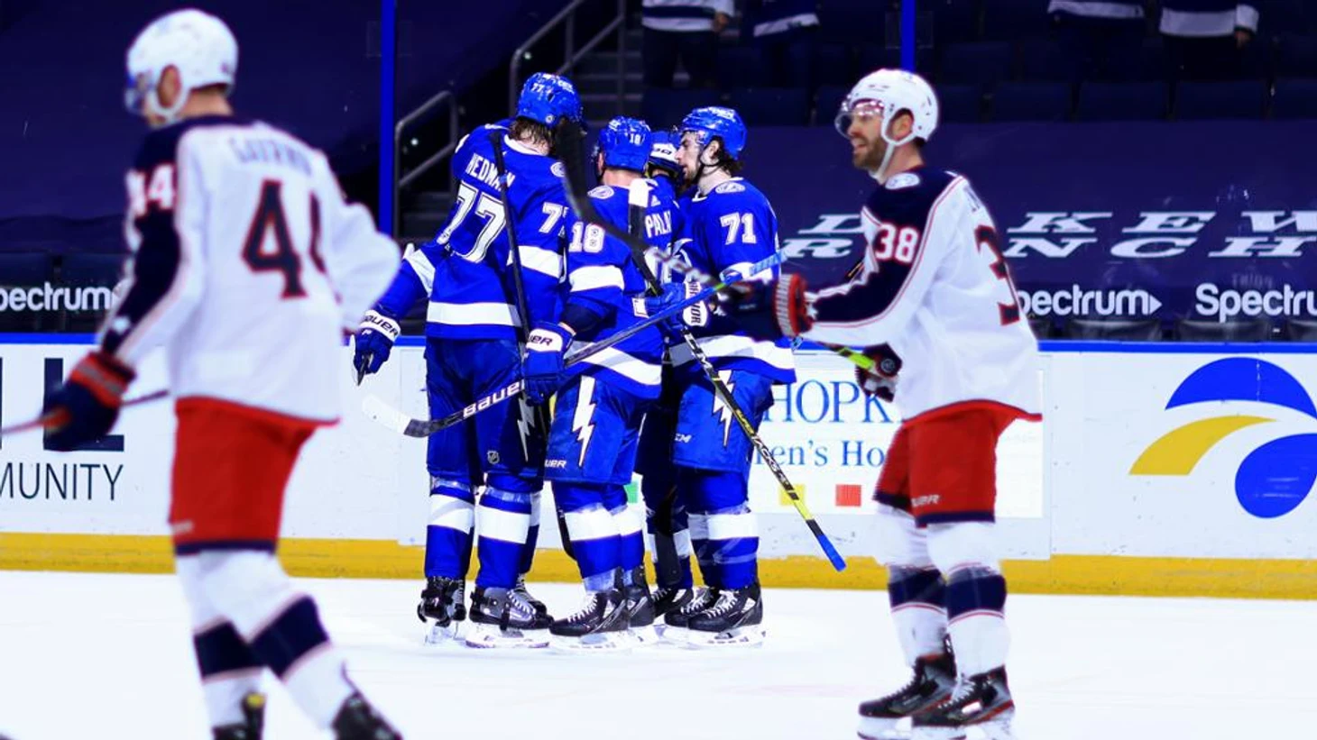 "Тампа-Бэй Лайтнинг"-"Колумбус Блю Джакетс" 3:2.Брэйден Пойнт за 4 минуты до конца матча забросил победную шайбу.Брэйден Пойнт забросил 2 шайбы,Андрей Василевский отразил 36 бросков.У гостей Закари Веренски и Эрик Робинсон набрали по 2 очка (1+1),Макс Доми отдал 2 результативные передачи."Молнии" прервали серию из 3 поражений подряд.