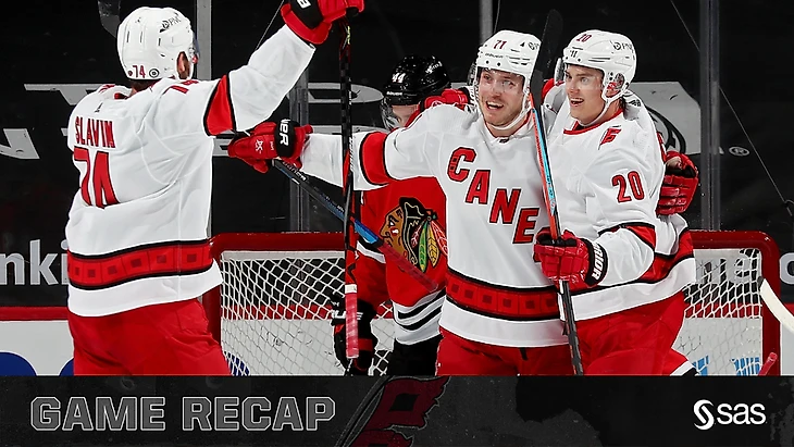 "Чикаго Блэк Хоукс"-"Каролина Харрикейнз" 3:4.Йеспер Фаст за 30 секунд до конца матча забросил победную шайбу.Уоррен Фогель забросил 2 шайбы,Йеспер Фаст и Винсент Трочек набрали по 2 очка (1+1),Джордан Стаал и Нино Нидеррайтер отдали по 2 результативные передачи,Джеймс Раймер отразил 22 броска.