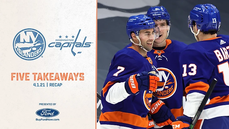 "Нью-Йорк Айлендерс"-"Вашингтон Кэпиталз" 8:4.Мэтью Барзал набрал 5 очков (3+2),Джордан Эберле набрал 3 очка (2+1),Джошуа Бэйли также набрал 3 очка (1+2),Брое Нельсон набрал 2 очка (1+1),Скотт Мэйфилд отдал 2 результативные передачи,Семён Варламов отразил 18 бросков.У гостей Джон Карлсон забросил 2 шайбы,Даниэль Спронг набрал 2 очка (1+1),Александр Овечкин отдал результативную передачу.В конце матча Мэтт Мартин подрался со Зденой Харой.