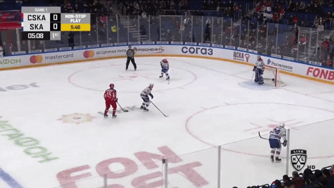 И вот продолжение этого эпизода: буквально через несколько секунд СКА раскатывается уже похитрее, Швец-Роговой делает щедрое оставление Каменеву – и игра все-таки залетает в зону ЦСКА, но ее легко тушат у борта.