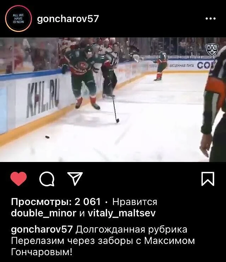 Уже в первом периоде второго матча с «Ак Барсом» защитник Максим Гончаров подарил момент, который обошел по яркости оба гола «Авангарда» и точно будет крутиться в различных хайлайтах не один год. Игрок хотел припечатать Виктора Тихонова-младшего, но соперник пригнулся и проскользнул – а Гончаров полетел. Не в стекло – его там не было, а на родную скамейку.