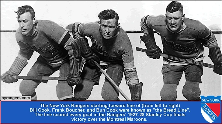 А это лидеры "Рейнджерс" тех лет. Из комментария под фото делаем вывод - задолго до появления на Бродвее Артемия Панарина ("Хлебушка"), в команде существовала "Хлебная линия". У Фредерика, и прозвище было - "булочка". Интересно, сам Артемий знает об этом?