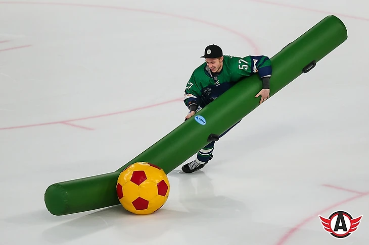 В первом соревновании четырём представителям от каждой команды предстояло пройти змейку, показывая своё владение огромной надувной клюшкой. Хоккеисты «Автомобилиста» и «Горняка» шли секунда в секунду, но екатеринбургские игроки под конец вырвались вперёд. «Авто» в этом конкурсе выходили против болельщиков – молодёжка лидировала, но финальный результат показал, что фанаты выиграли с разницей в 1 секунду.