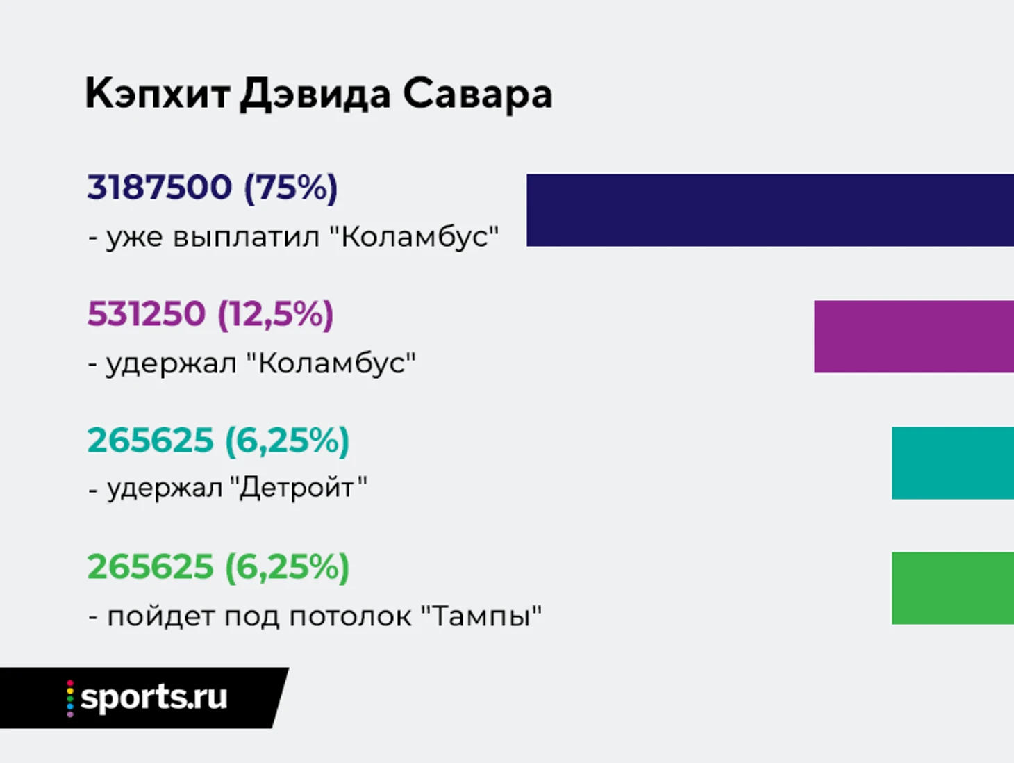 Но коллективное соглашение НХЛ оставляет много дырок в регулировании потолка. Вполне возможно, они сделаны намеренно, чтобы ушлые генеральные менеджеры соревновались в том, кто выкрутится из сложных ситуаций с большим эффектом. «Лайтнинг», кажется, победили всех – они получили защитника «Коламбуса» Дэвида Савара с кэпхитом в 4,25 млн – при этом с помощью сложных манипуляций его удалось вписать под потолок, хотя там вообще не было места.
