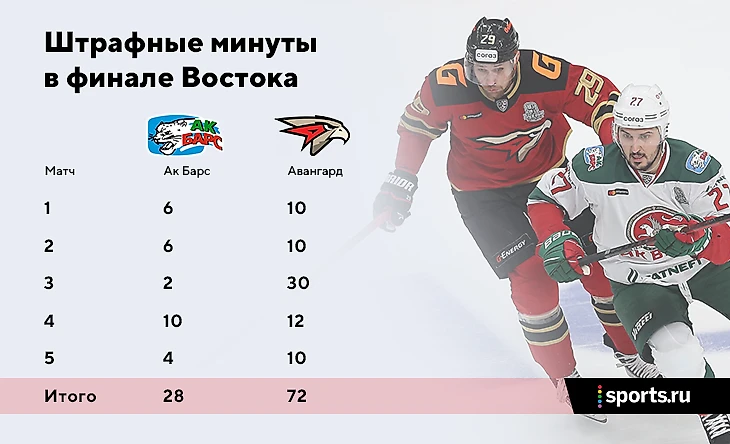 Вот разбивка по штрафным минутам в серии «Ак Барс» – «Авангард».
