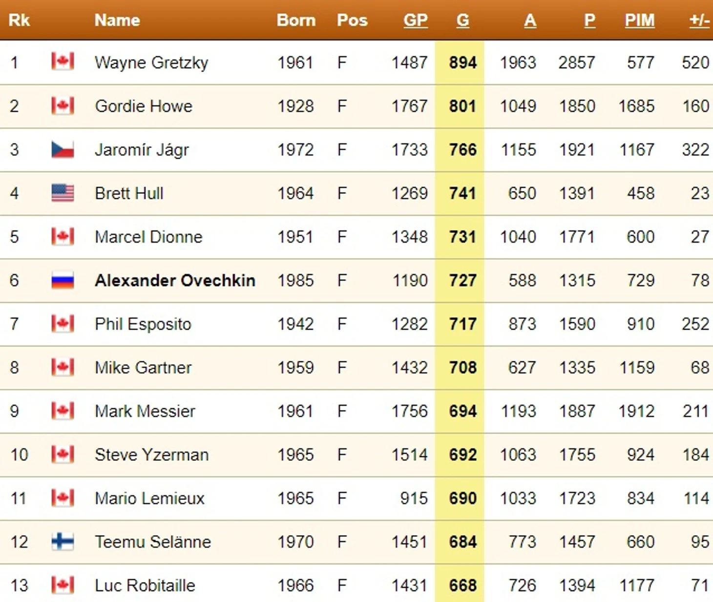 В заключении пожелаем Овечкину пробить очередные карьерные 30+ голов за сезон (пока 21) и попутно оформить 30-й гол в ворота Бостона (пока 27). Всё это однажды поможет добраться до заветных 895 голов, 81 % пути пройден.