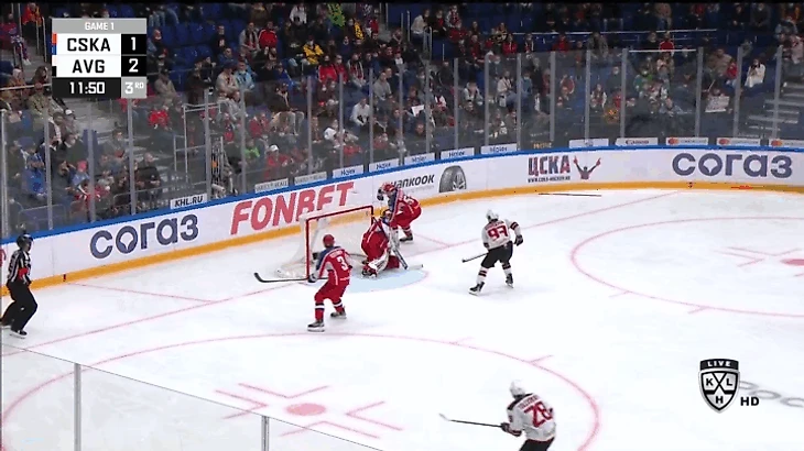 Чего-то опасного армейцы создать не смогли, но территориальное преимущество захватили. Игра продолжилась в равных составах и тут Шарипзянов со Стасем в короткой перепасовке в своей зоне отдали шайбу сопернику. Атаки ЦСКА нарастали, как снежный ком.