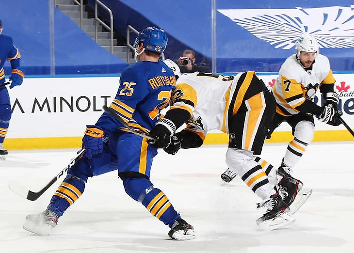 "Пингвинс" чрезвычайно неудачно начал воскресную встречу, пропустив уже на 26-й секунде после броска Артту Руотсалайнена. В начале второго периода и ближе к середине третьего Сэм Райнхарт довел перевес "Сэйбрз" до 3:0, и только в этот момент "Питтсбургу" удалось размочить ворота соперника (отличился Джейсон Цукер).