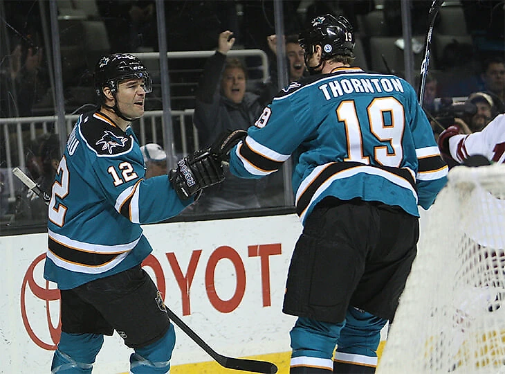 Торнтон и Марло подружились и стали символами «Шаркс» на десятилетие, но – будучи центральными нападающими – поначалу они играли в разных звеньях. По-настоящему легендарной их связь сделала тройка, которая просуществовала всего два сезона: Марло – Торнтон – Хитли.