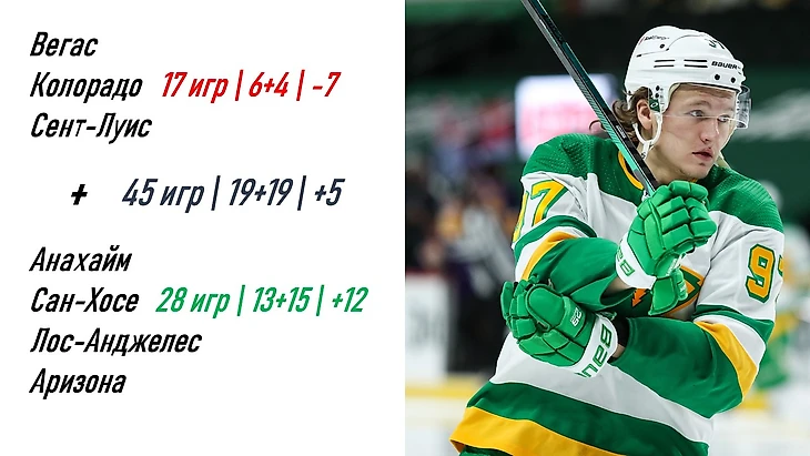 Капризову всё приходится тащить на себе. У него были проблемы с серьезными командами по типу Вегаса или Колорадо в первой половине сезона, а вот в последних 4 матчах против этих команд у него 6 очков. Это так, если обращаться к статистике.