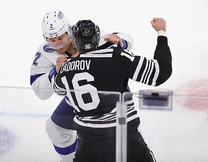 Это была не единственная драка в матче «Чикаго» и «Тампы». Во втором периоде Коннор Мерфи поехал заступаться за проводившего первую игру Марка Хардмана и огреб от Эрика Чернака. Тут и без голосований все понятно.