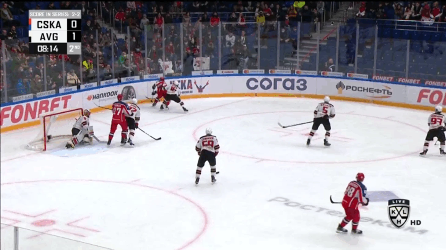 Давно не новость, что в обязанность центральных нападающих входит помощь при игре в обороне. Несмотря на это, только в финальной серии «Авангард» успел пропустить в ситуации, где один защитник ушел на борт, через второго отдали пас, а на пятаке остался неприкрытый игрок соперника.
