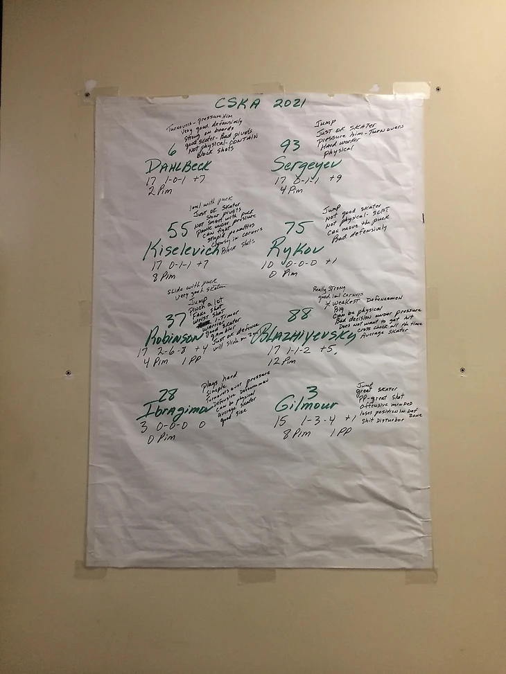 У «Авангарда» тоже были такие записки – в чемпионской раздевалке обнаружили экспресс-разбор защитников ЦСКА.
