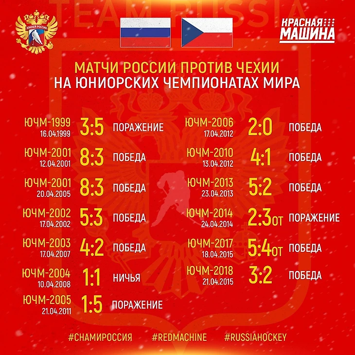 Удивительно (ведь Чехия, в отличие от Германии, вылетала из элиты лишь на год), но наши парни на юниорских чемпионатах мира провели с ними всего 13 матчей.
