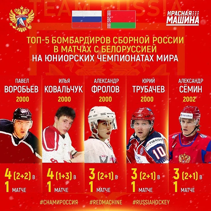 Да, кстати, немаловажная деталь – никто из наших юниоров не играл против сборной Белоруссии на ЮЧМ дважды.