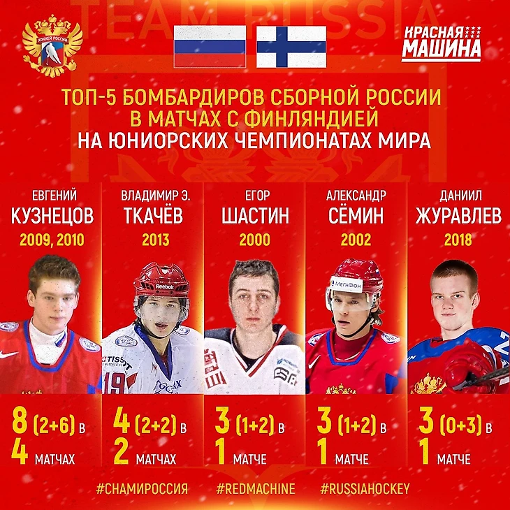 Дмитрий Чепелев снова расчехлил статистическую машину, Андрей Рыжиков по-прежнему не жалеет зрения в борьбе с протоколами, а дизайнер Ира Пинчук продолжает ругать качество фотографий из прошлого. Благодаря этим людям мы с вами сегодня подойдем к матчу с полной историей российско-финского юниорского противостояния перед глазами.