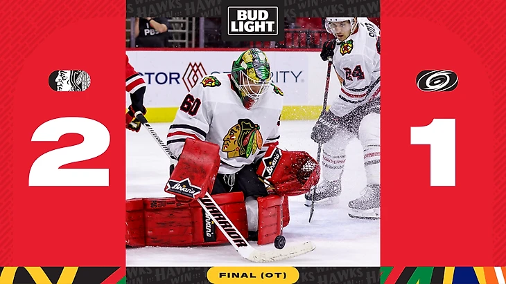 "Каролина Харрикейнз"-"Чикаго Блэк Хоукс" 1:2 (ОТ).Алекс ДеБринкат в овертайме принёс победу гостям,Колин Делиа отразил 36 бросков."Чёрные ястребы" прервали серию из 6 поражений подряд.