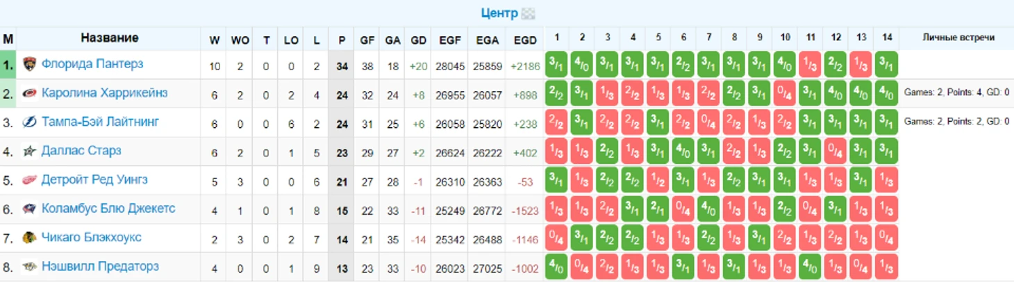 Флорида Пантерз - Даллас Старз Каролина Харрикейнз - Тампа-Бэй Лайтнинг
