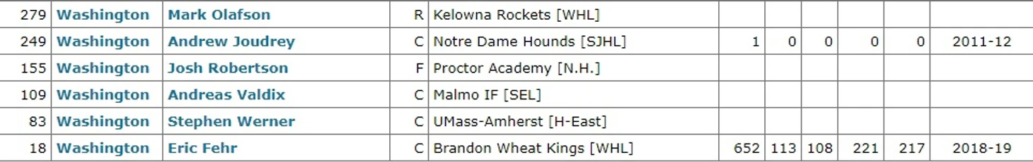 При построении команды роль цетрфорварда первого звена переоценить сложно. С огромной долей вероятности, Вашингтон попытался бы закрыть именно эту позицию, ведь молодые игроки Гордон, Сатерби и Фёр явно не соответствовали уровню центра ТОП6. Если бы Вашингтон выиграл лотерею, то, без малейшего сомнения, взяли бы Кросби. А я даже рад, что этот вариант не реализовался. Противостояние Овечкина и Кросби намного интереснее, чем их игра в одной команде. В ином случае Вашингтон должен был обратить внимание на лидера европейского рейтинга Копитара, который в общем списке занимал примерно 6-7 позицию. А вышло почти как в анекдоте у Газзаева после игры с «Арсеналом»: виртуально Кросби или Копитар, реально Покулок и Финли, которые за Кэпс не сыграли ни одного матча. Как и остальные игроки, выбранные Вашингтоном в тот год. Очень даже вовремя случился локаут.
