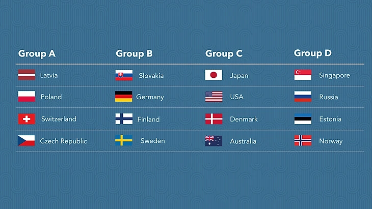 На данный момент сб. Норвегии занимает 9-ю строчку мирового рейтинга, Эстония находится на 11-м месте, Сингапур - 14-й, Россия - 17-я.