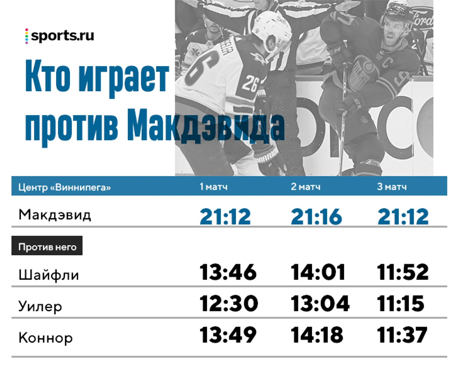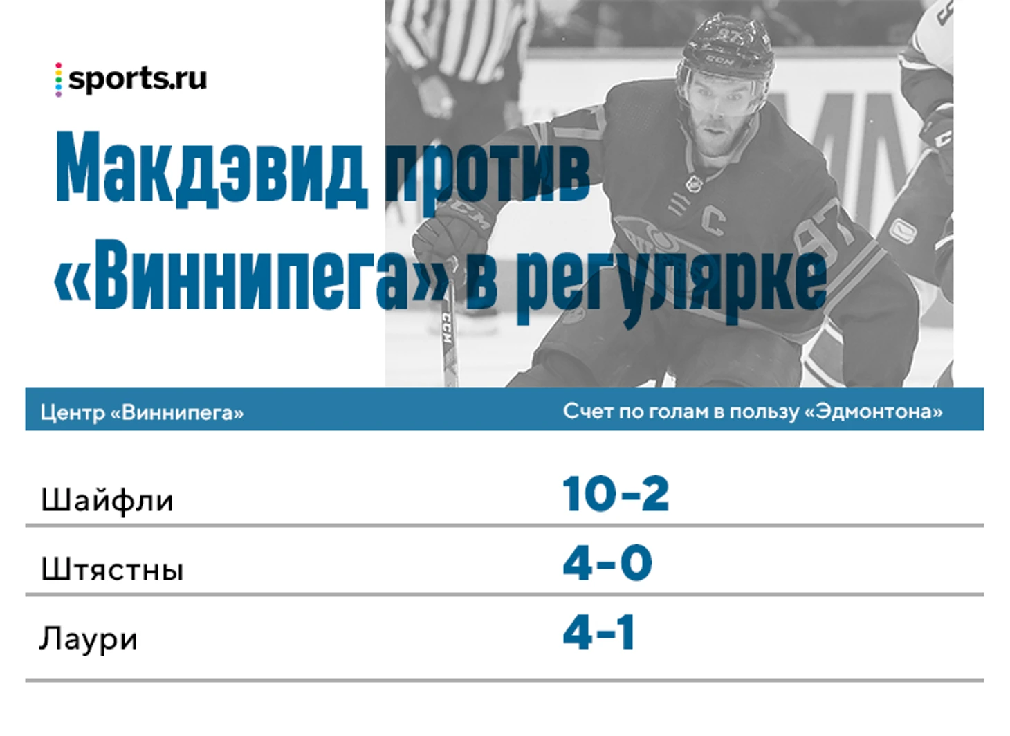И исторические 105 очков в укороченной регулярке – это только полбеды: Коннор очень здорово в этом сезоне играл конкретно против «Джетс» – какой бы центр «Виннипега» ни выходил против него.