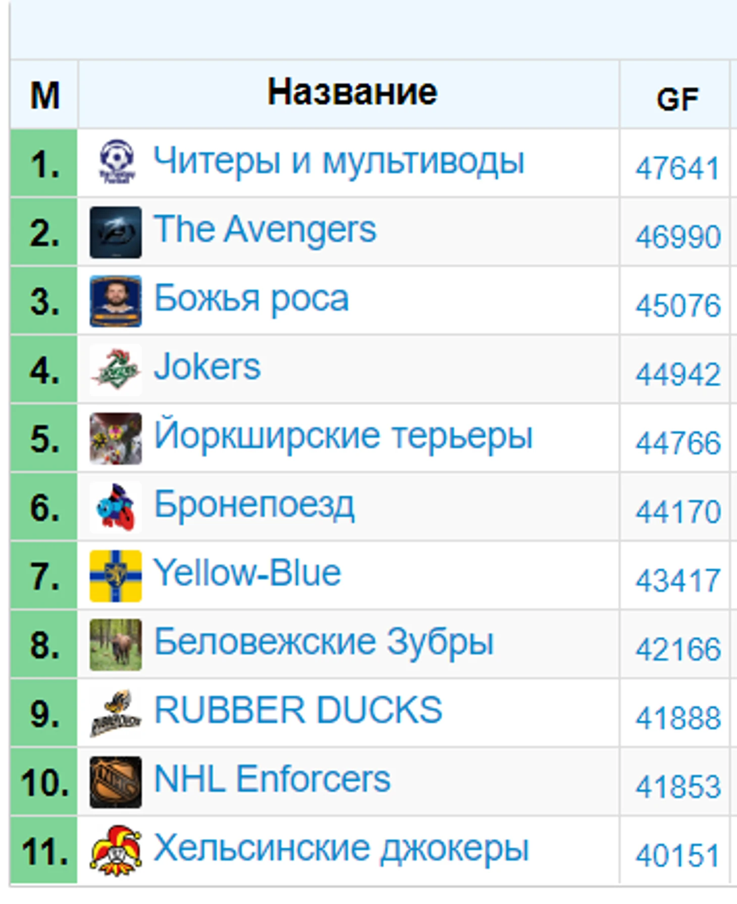 На старт в турнире вышло 11 команд! Осмелились даже читеры и еще кучка отважных придурков!